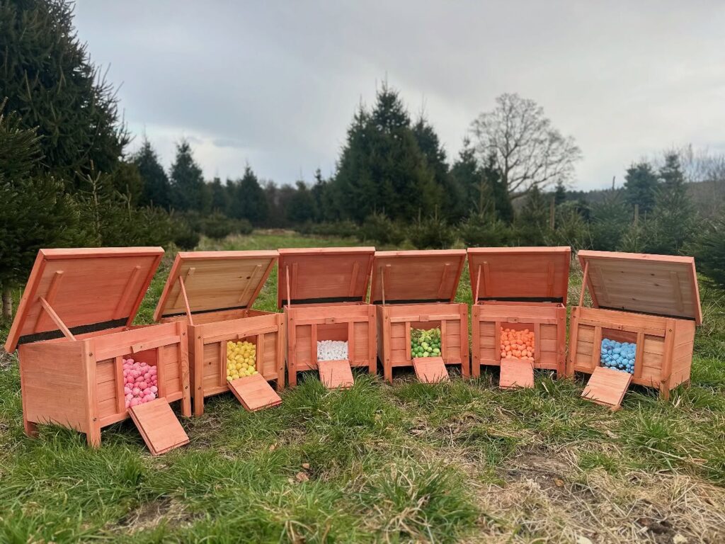 🍫 Return to the farm shop, collect your empty egg box, and fill it up with chocolate eggs from our coop.
